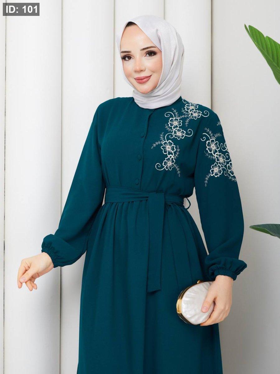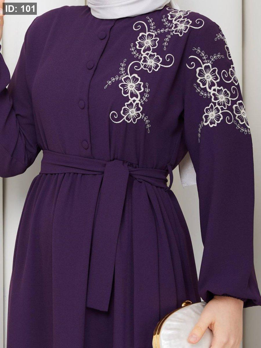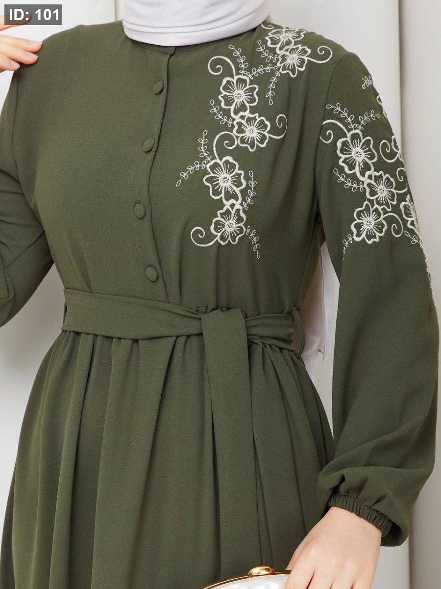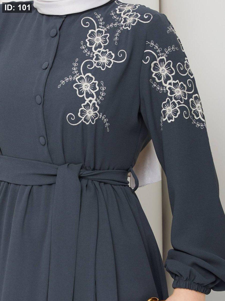 تصميم أنيق وعملي باضافة تطريز على شكل وردة على الكتف ممتد للصدر مع أزرار قابلة للفتح.
