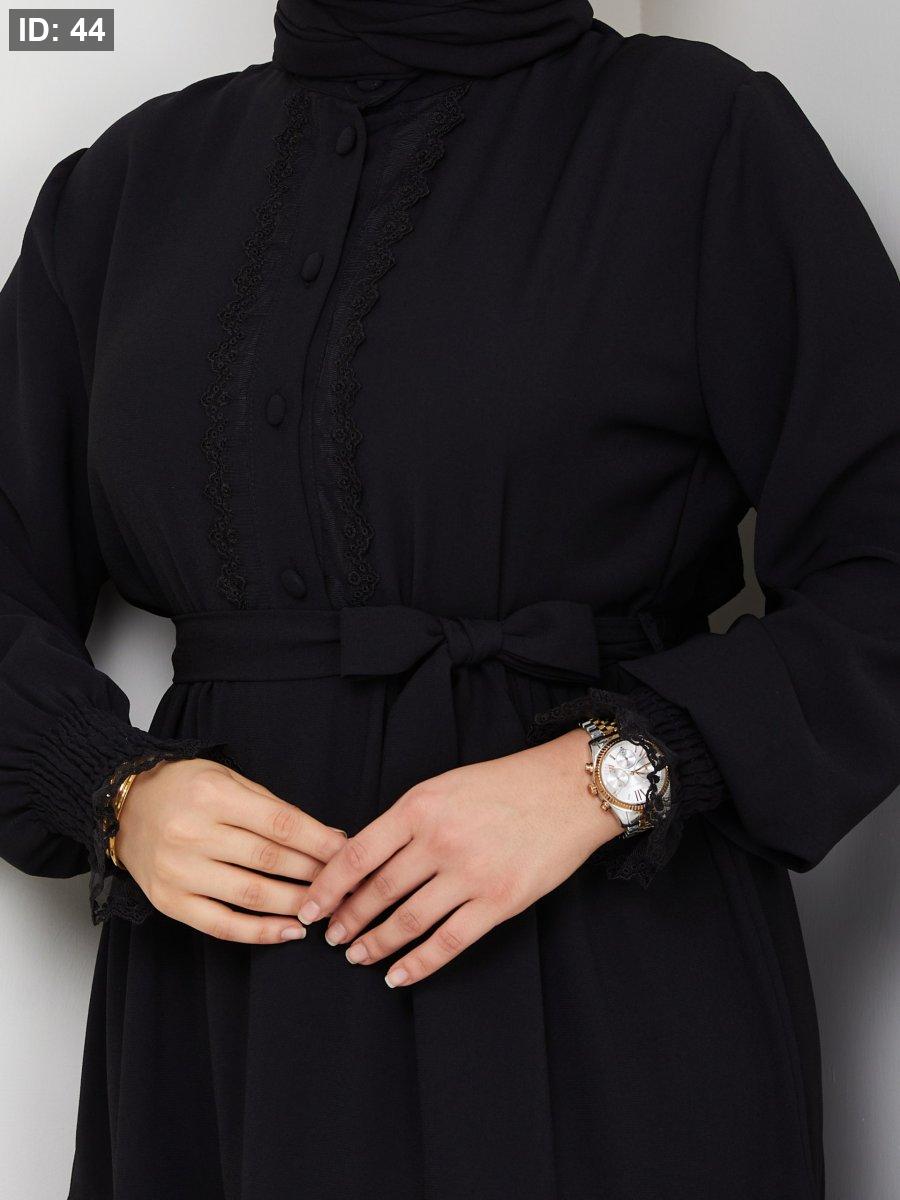 يكون معه حزام/قشاط من نفس اللون والقماش.
