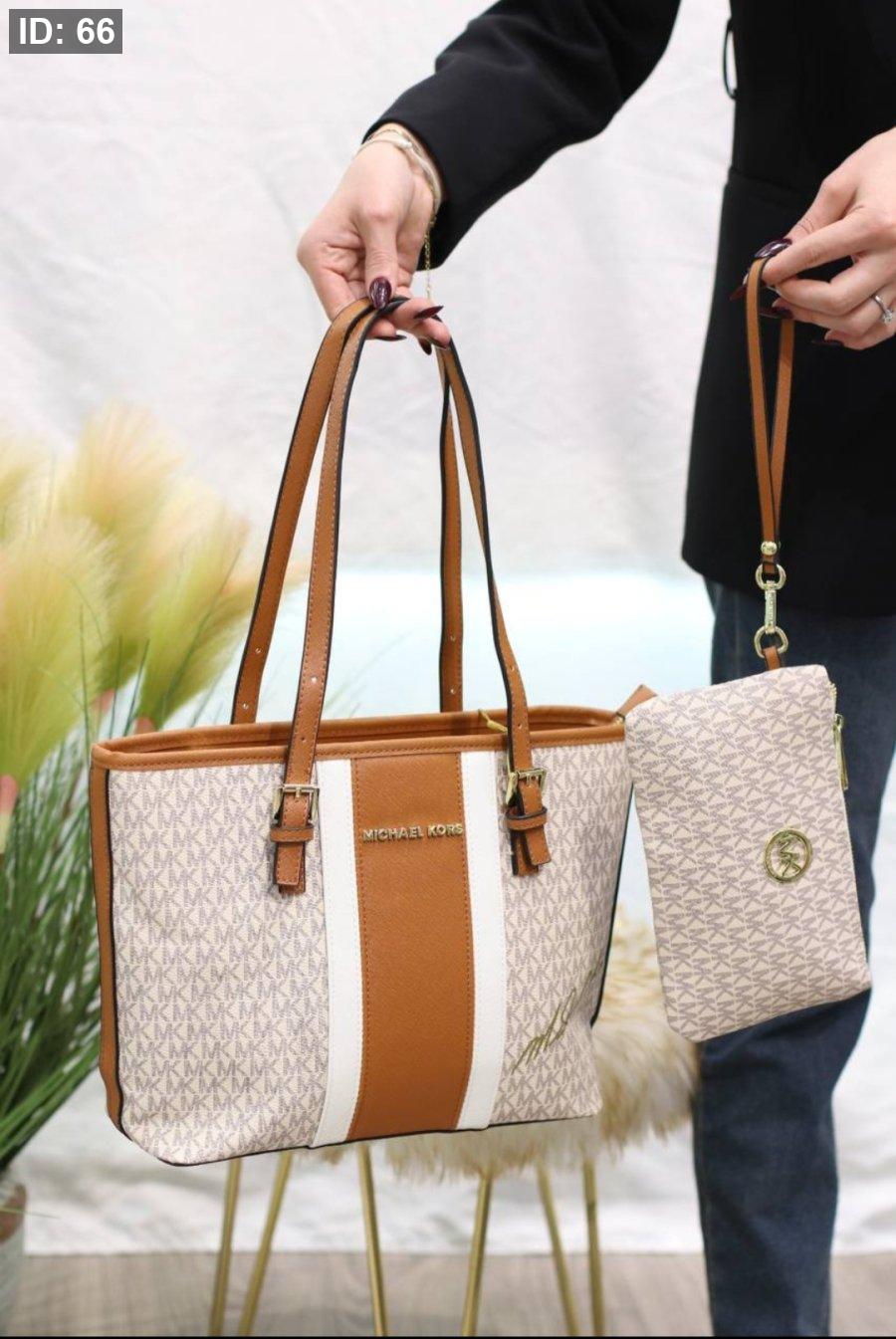 شنطة مميزة من ماركة michael kors تحتوي على اللونين الجملي والابيض.